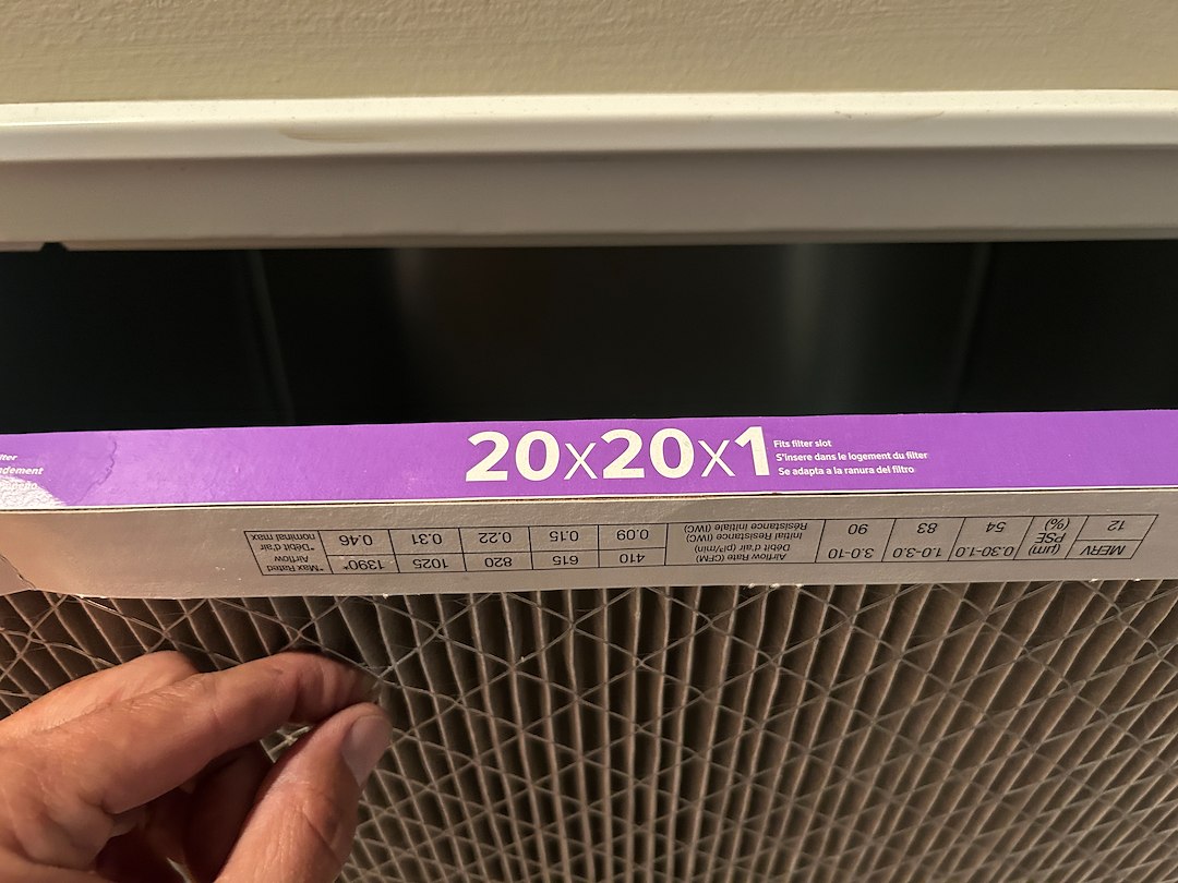 We received a call from a new customer in Johnson City, TN in need of a heat pump repair. Their heat pump for the 2nd floor was not cooling. We advised them to turn the machine off. When we arrived, we went to the 2nd floor thermostat. We confirmed that the indoor blower motor was working by cycling the thermostat in the Fan On position. We had 2 return grilles servicing the 2nd floor unit, but notated that they were using MERV 12 filters which are too restrictive when they are only 1” thick. We let the customer know that they should downgrade their filters to a MERV 4 to 6 or upgrade to a 4” or 5” thick media filter if they want to continue to filter their air at that level. The filters were whistling, were hard to pull away, and slapped close when you let your hand off of them. These symptoms are a sign that the indoor unit is starving for air.