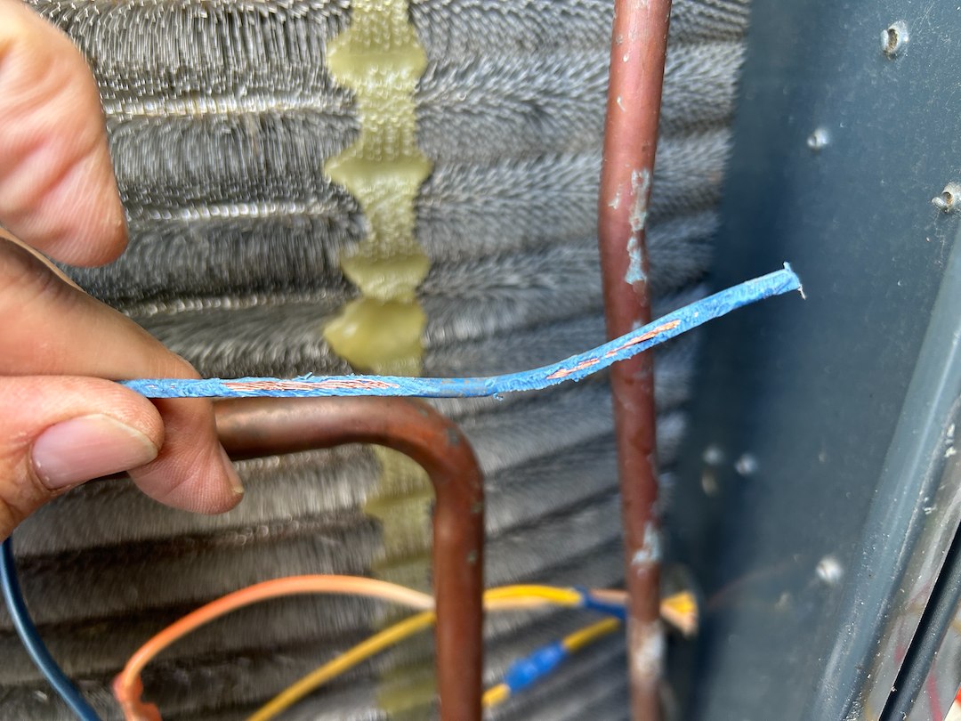 We let the customer know what we had found and showed him pictures of the mess created by the rodents. We gave him an estimate on what it would take to fix the wiring up and advised him that we might have some other damages to the system, but we wouldn’t know until we rectified the wiring issues. We gave him an estimate on a worst-case scenario as well. We received approval to proceed with trying to get the unit operational again.