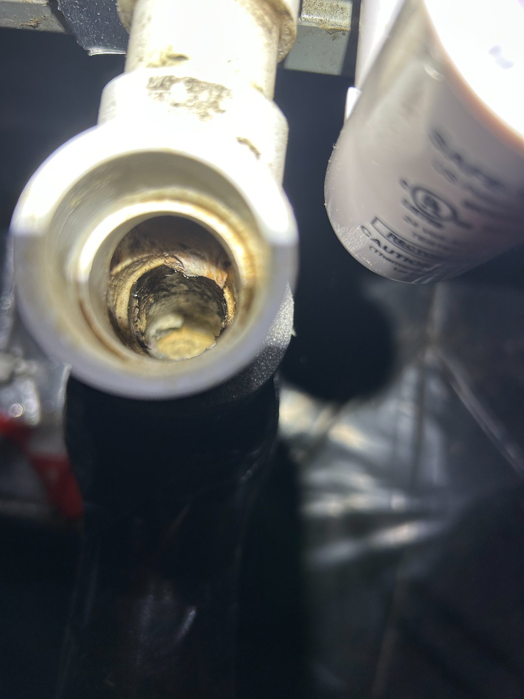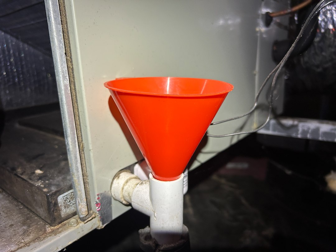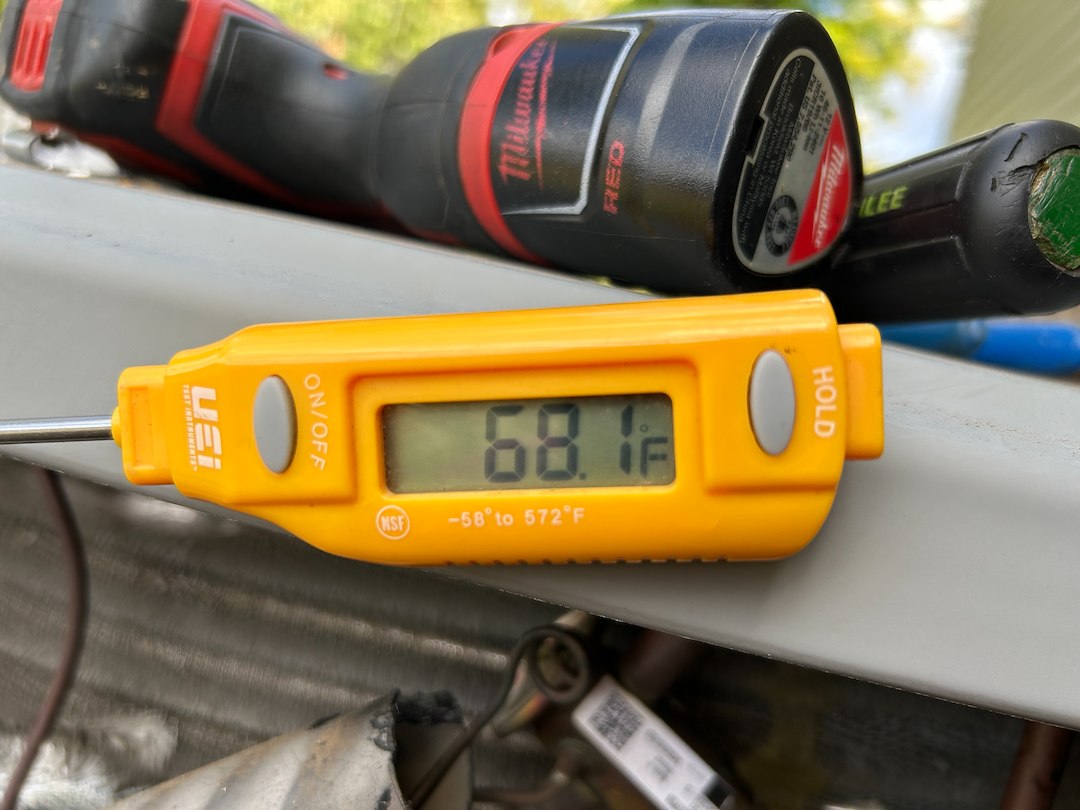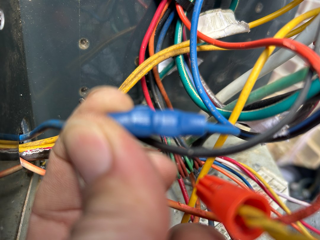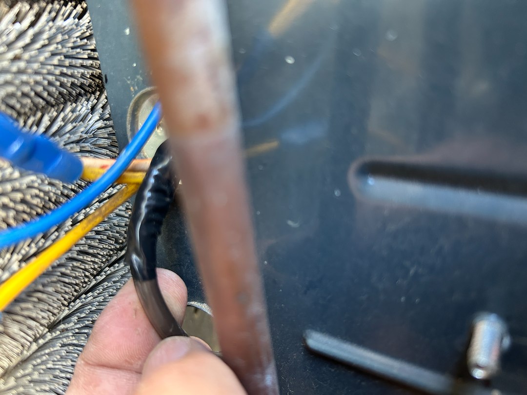 We went back under the house and restored high voltage to the indoor unit as well. We tested the low voltage circuits to the outdoor unit with our short pro tool and did not have any further shorts detected to the outside anymore. We shut down high voltage to the indoor unit again and re-wired the low voltage control wiring inside the machine. We tested continuity on the SS2 float switch and it was intact and confirmed its operation in the low voltage circuit. We removed our resettable low voltage fuse tool from its location and installed a new 5-amp low voltage fuse in its place. Since, we were already under the house we snaked and flushed the drain line to the outside because we noticed it had buildup in it from running over the years. We primed the p-trap upon completion of the drain line flush and restored high voltage to the indoor unit. We placed the panel back onto the machine and decided it was time to test the system out from the thermostat.