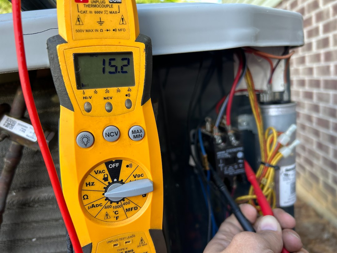 We received a call from an existing customer in need of a heat pump repair in Unicoi, TN. He stated that nothing was working on his 9-year-old American Standard heat pump. He said that he had a thermostat display, but the blower wasn’t turning on and neither was the outdoor unit. We advised him to turn the thermostat to the off position until we got over there.